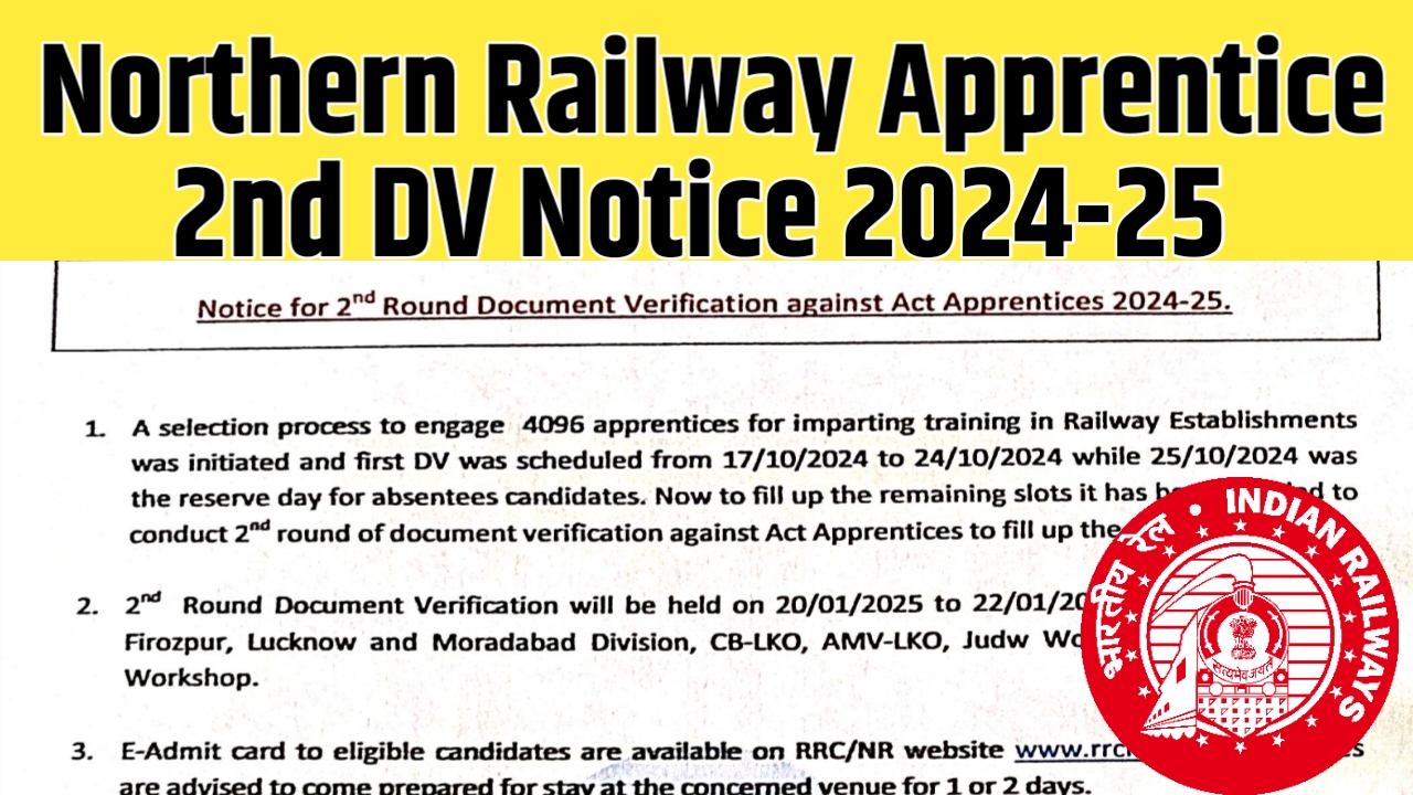 Northern Railway Apprentice 2nd Round DV 2024-25 Notice