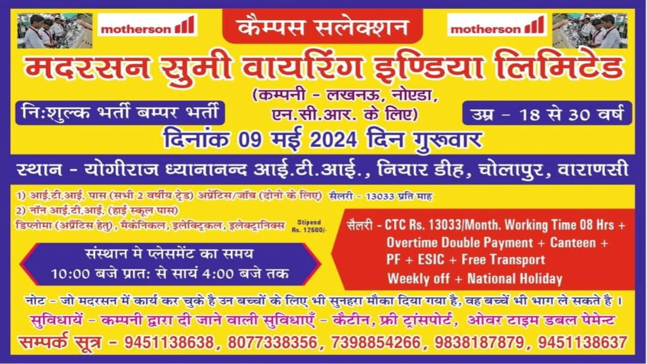 Motherson Sumi कंपनी मे आयी 12वी/आईटीआई/डिप्लोमा पास वालो के लिए भर्ती, जानें पूरी जानकारी